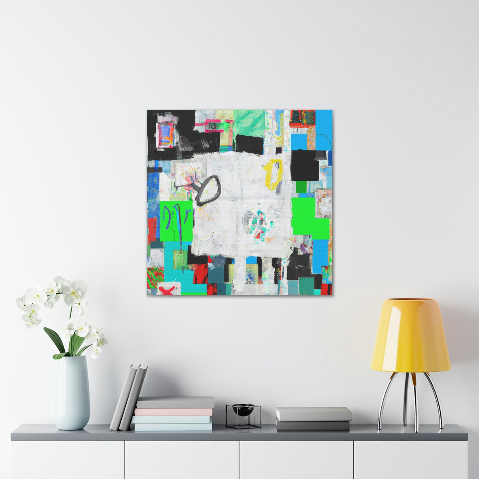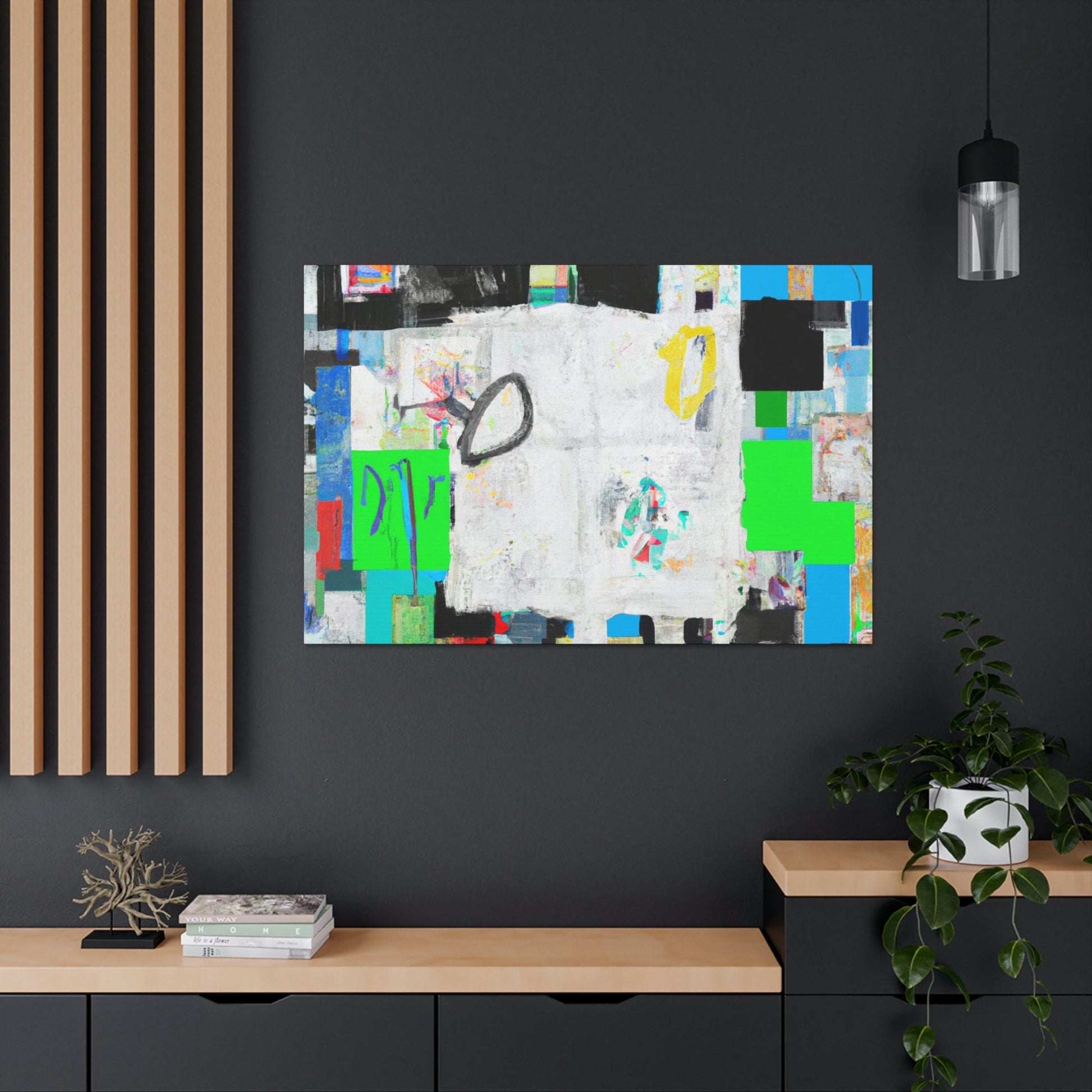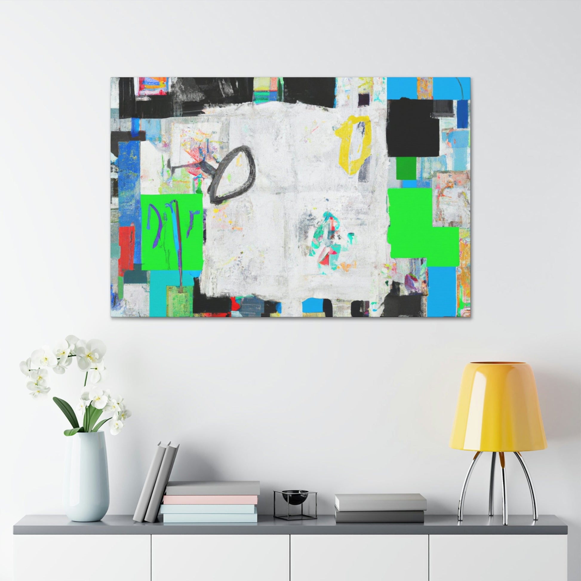 This fine art abstract painting delivers a unique, Abloh-like aesthetic with a textured Basquiat background. Its vivid colors and modern themes make it a must-have for any art gallery. Long-lasting, high-quality canvas allows this piece to be enjoyed for many years. Buy this unique work of art for your collection today, and experience a touch of joy every time you look at it!