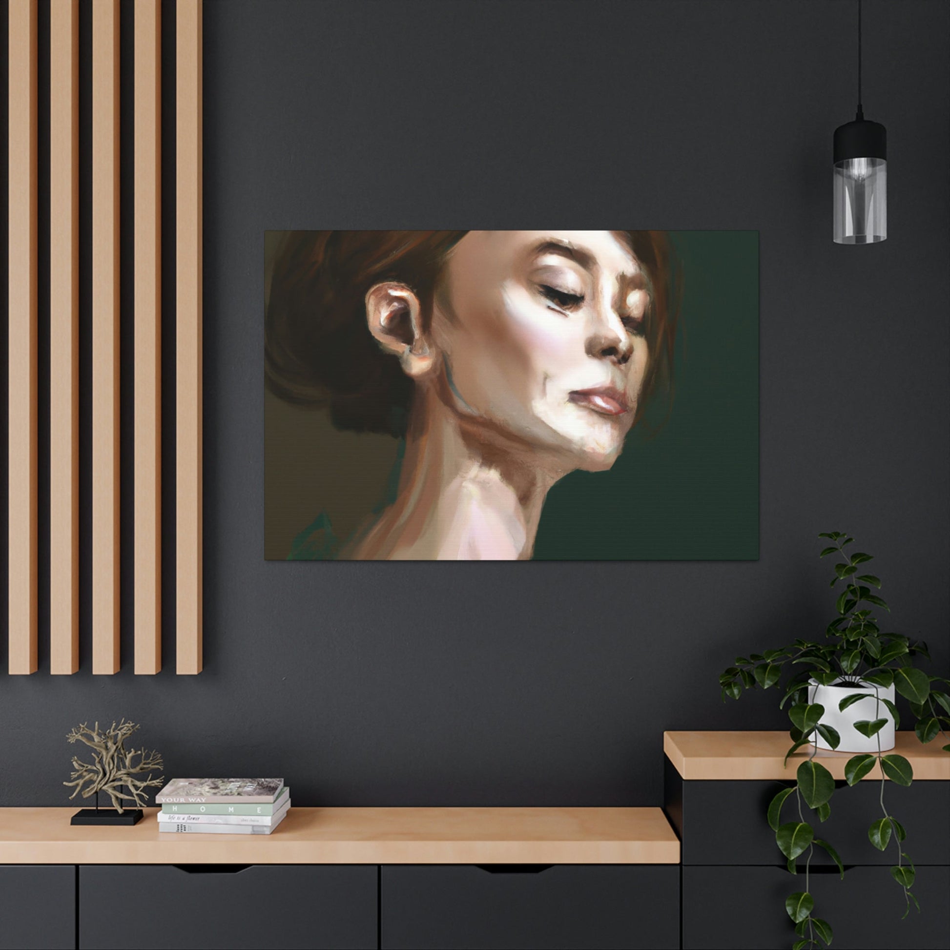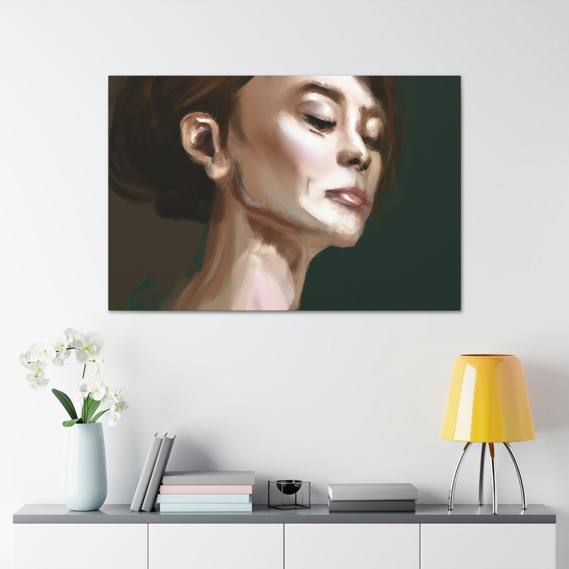 This elegant canvas painting is the perfect piece to liven up any room. Its realistic brush stroke detail creates a 3D effect that looks almost like a photograph. High quality canvas and vibrant inks create a lifelike woman with realistic skin tones and beautiful facial expressions. Its unique and stylish design is perfect for anyone who wants to add an artistic flair to their home. #canvas