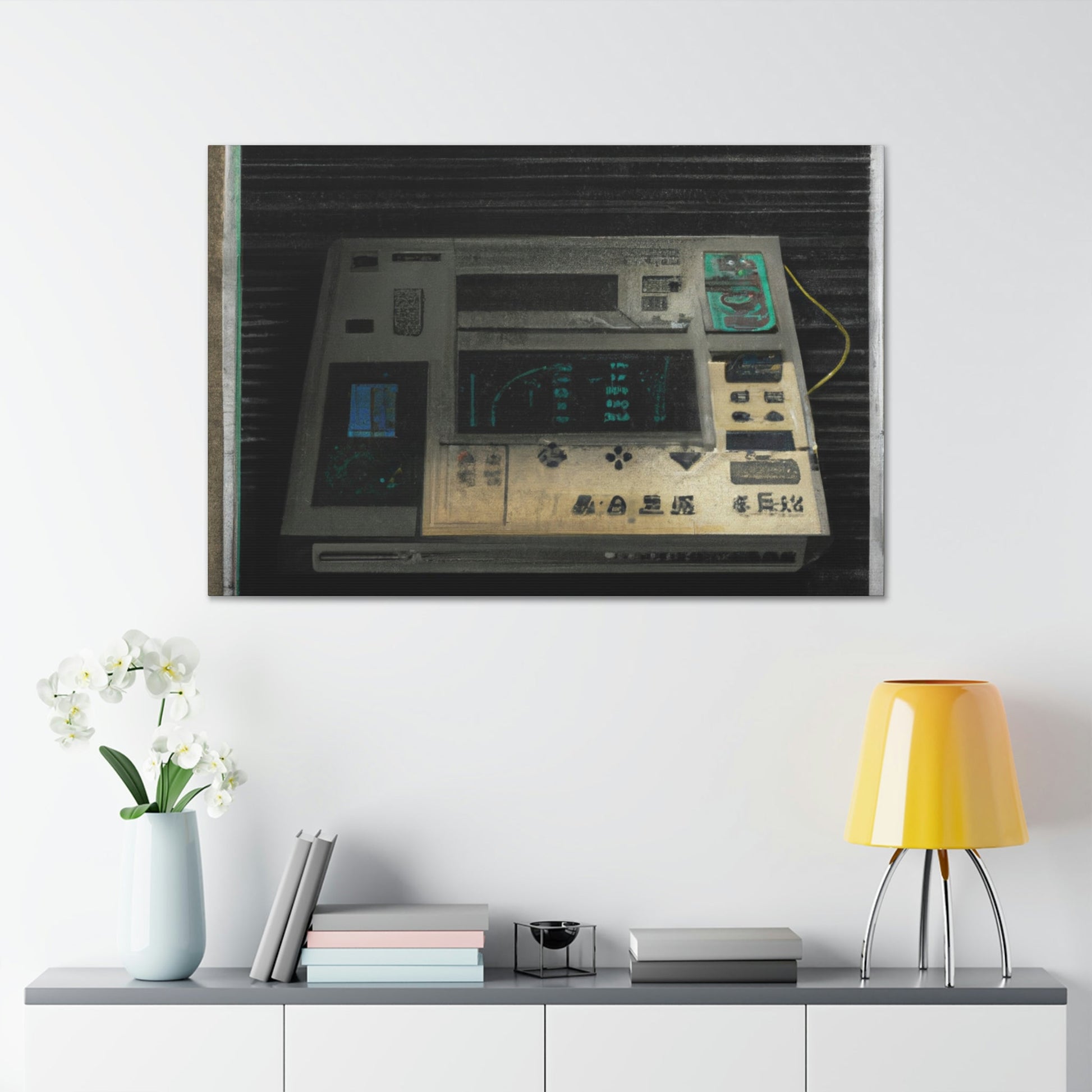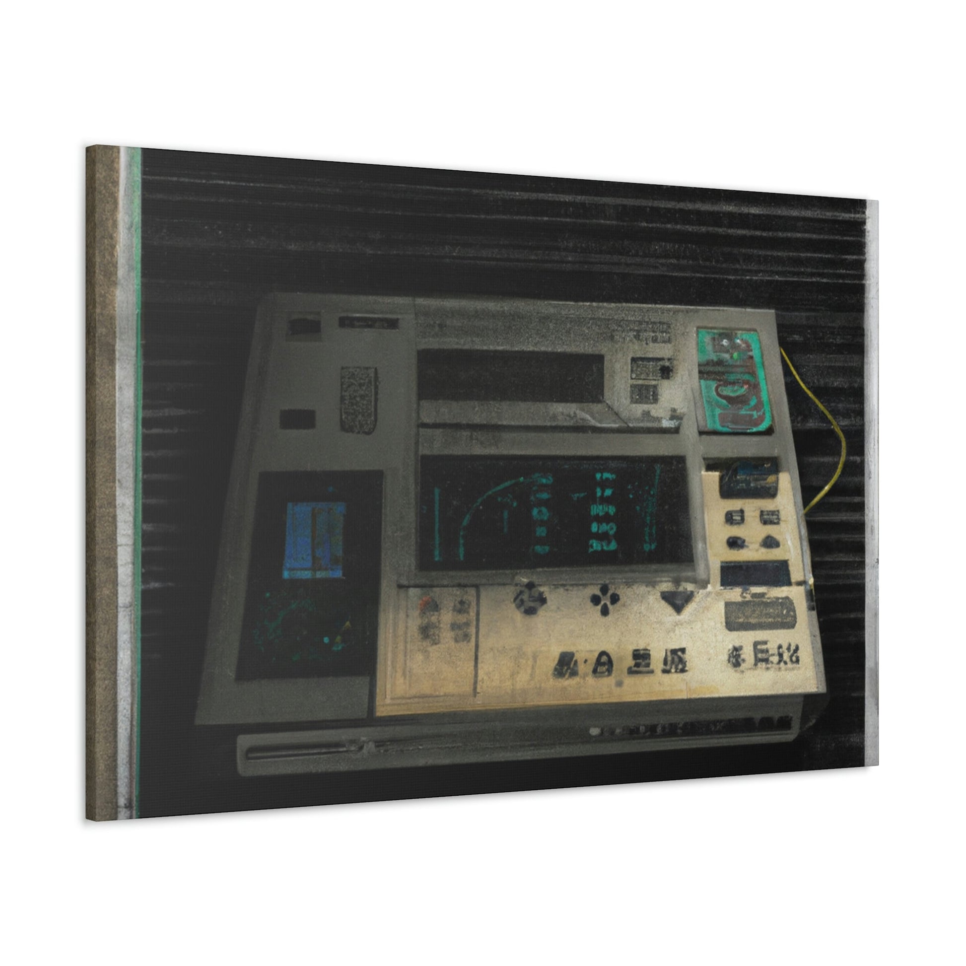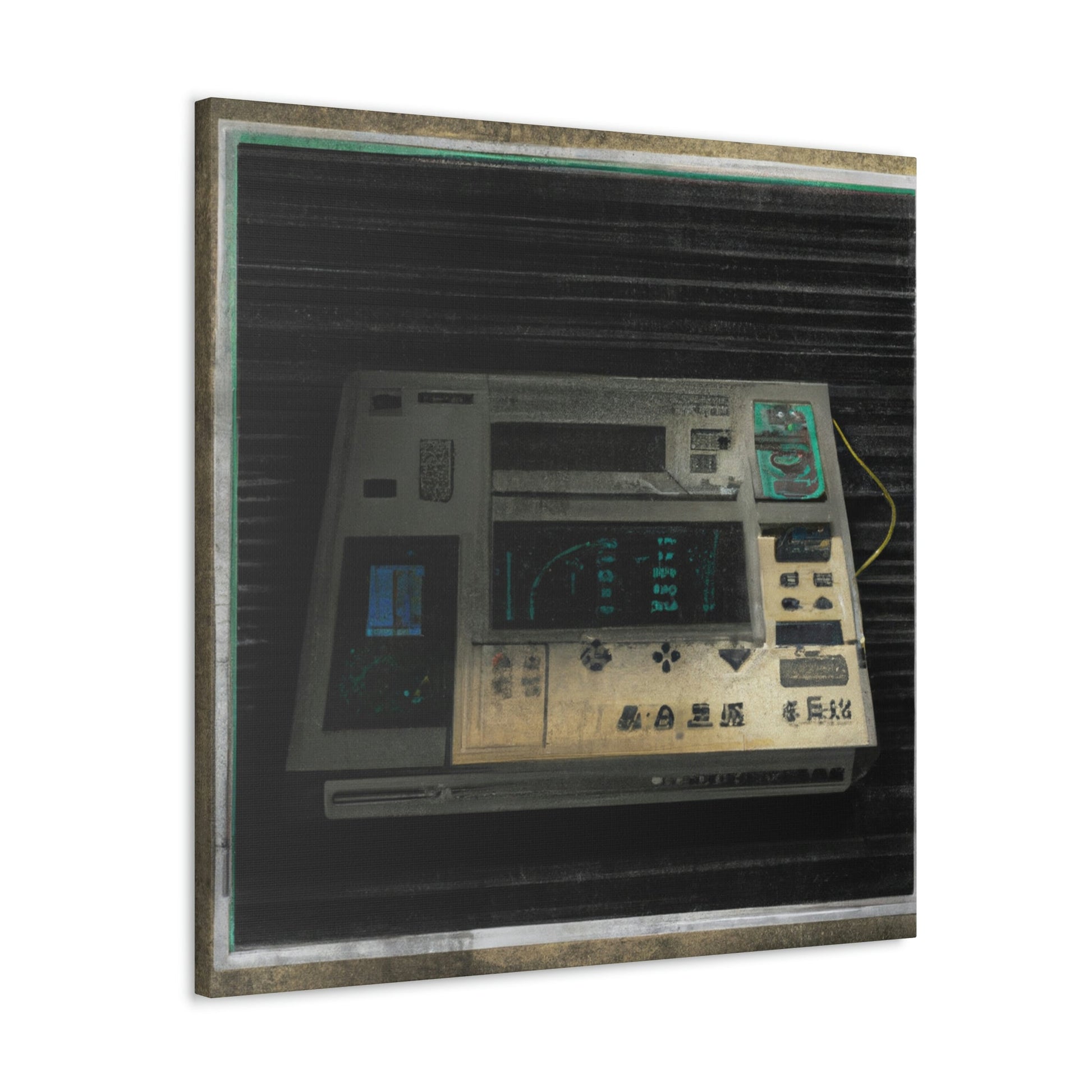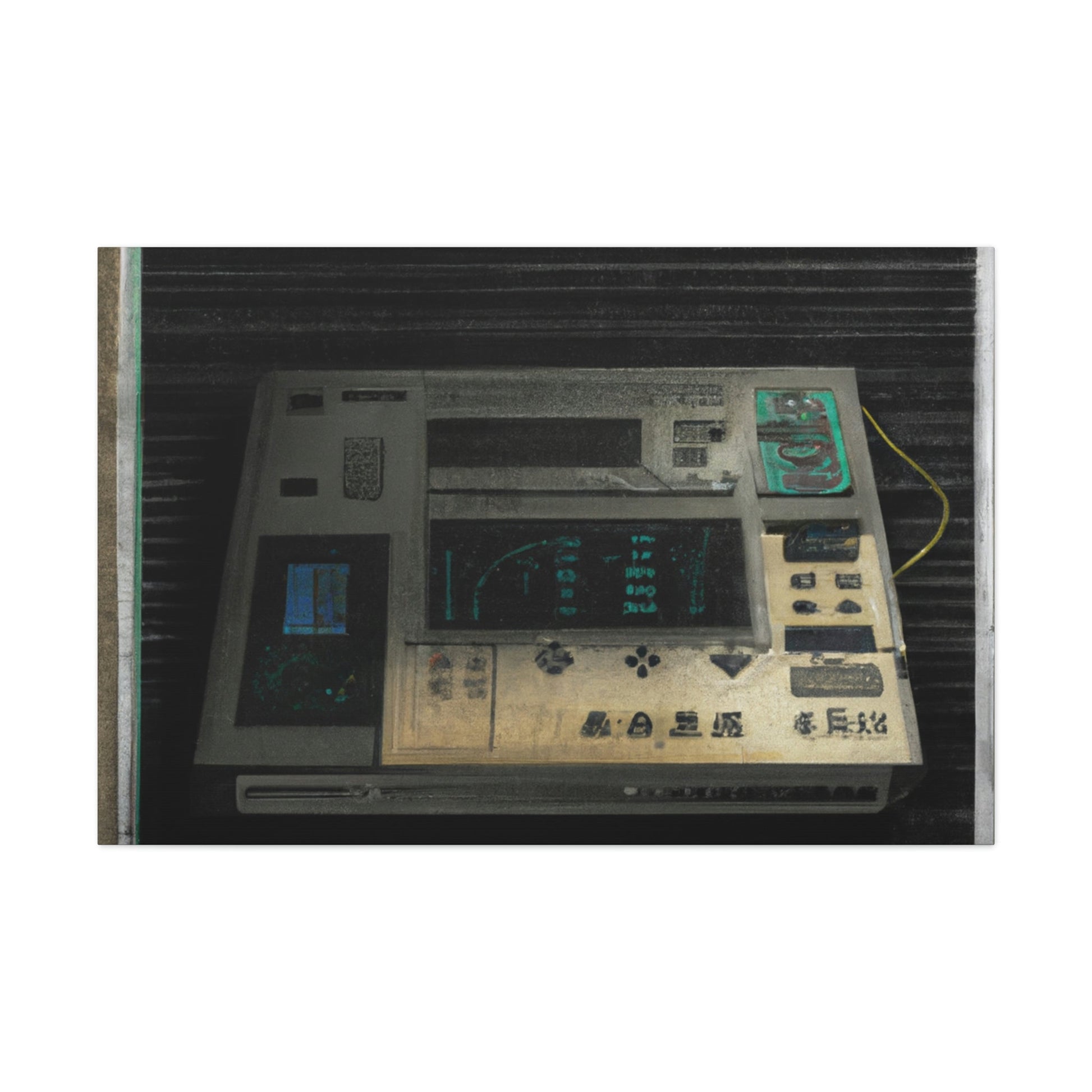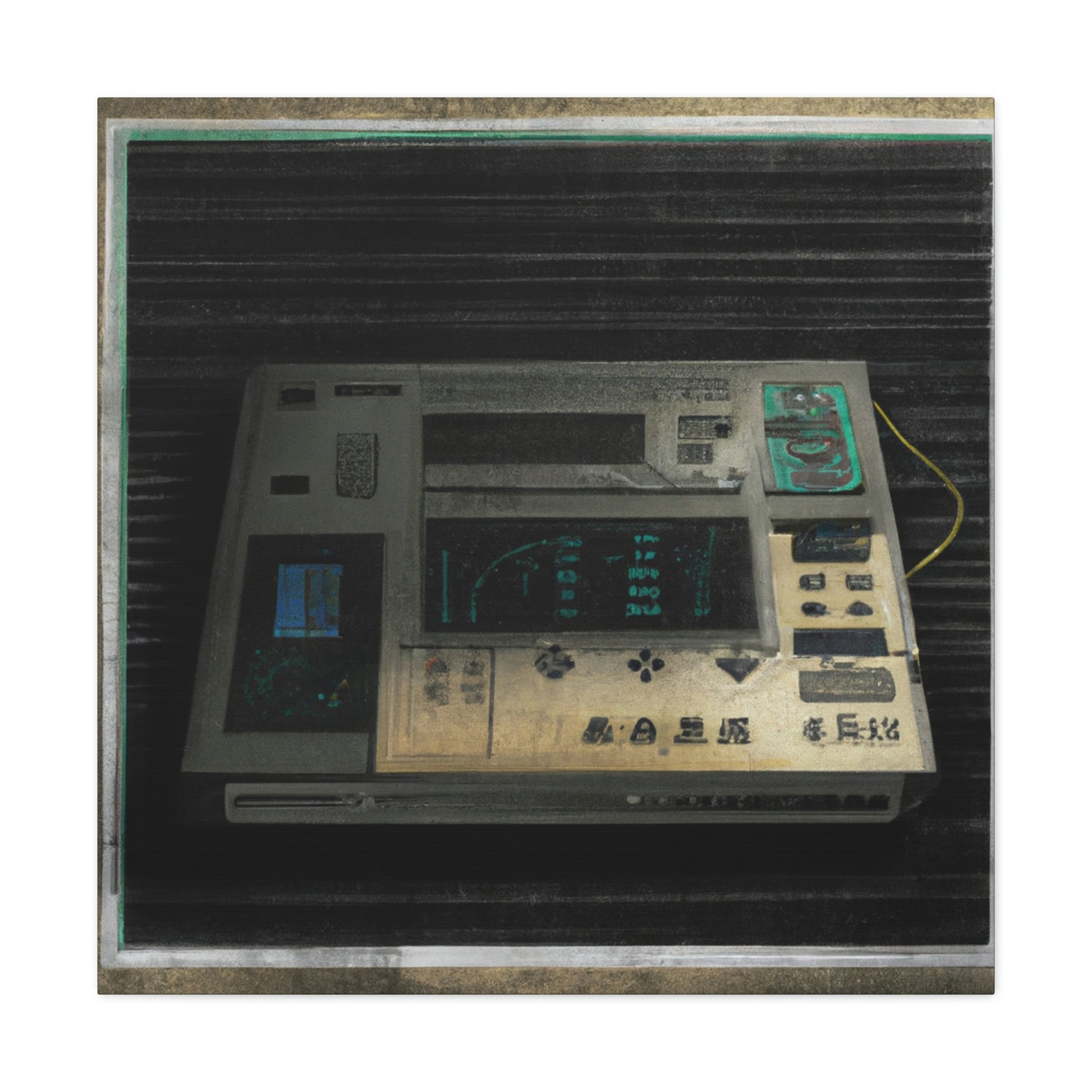 This high quality canvas of a photo-realistic painting of an 80s electronic device boasts muted tones and textured backgrounds. The perfect addition to any art gallery, this painting captures the energy of the 80s with subtle sophistication. Its timeless beauty will be treasured for generations to come.