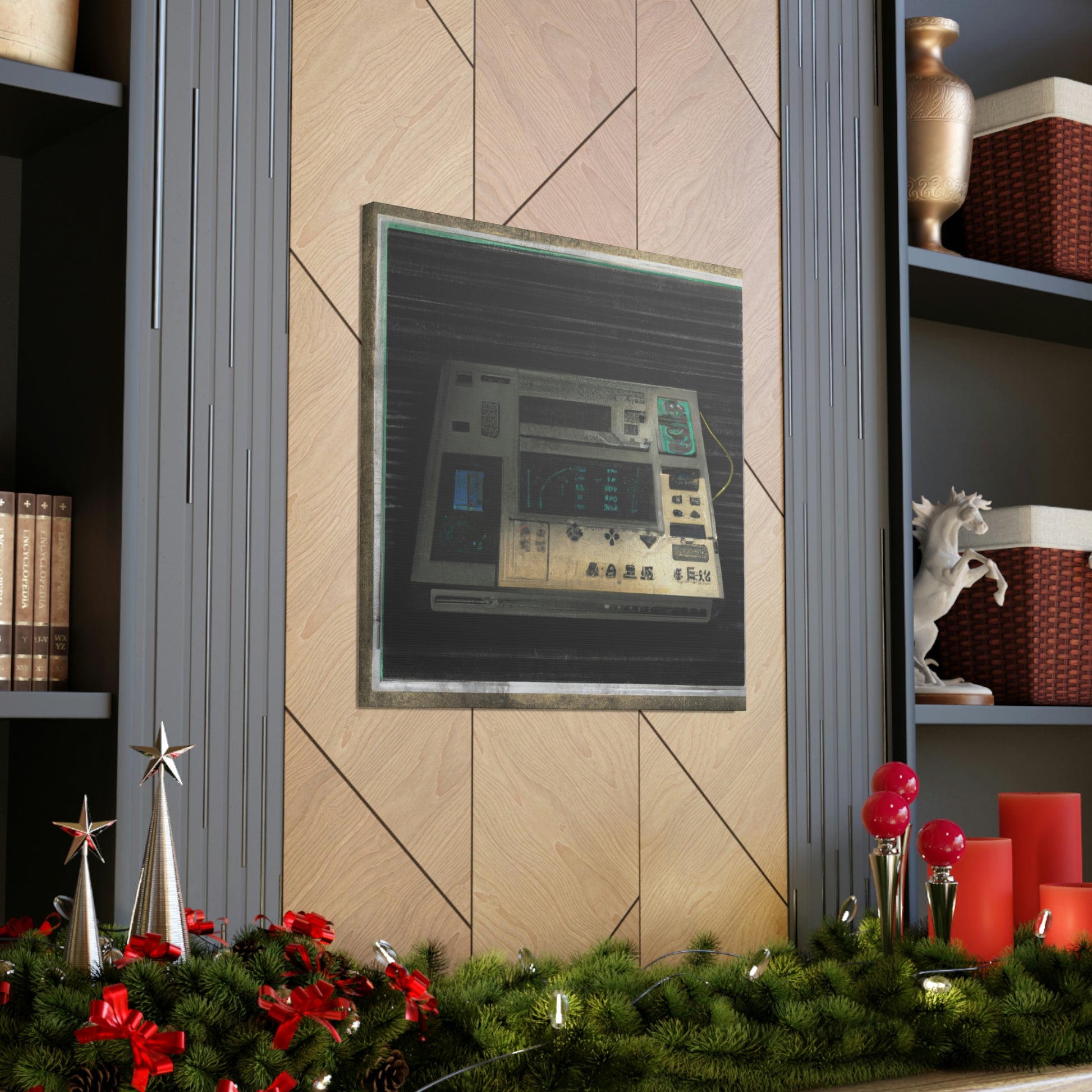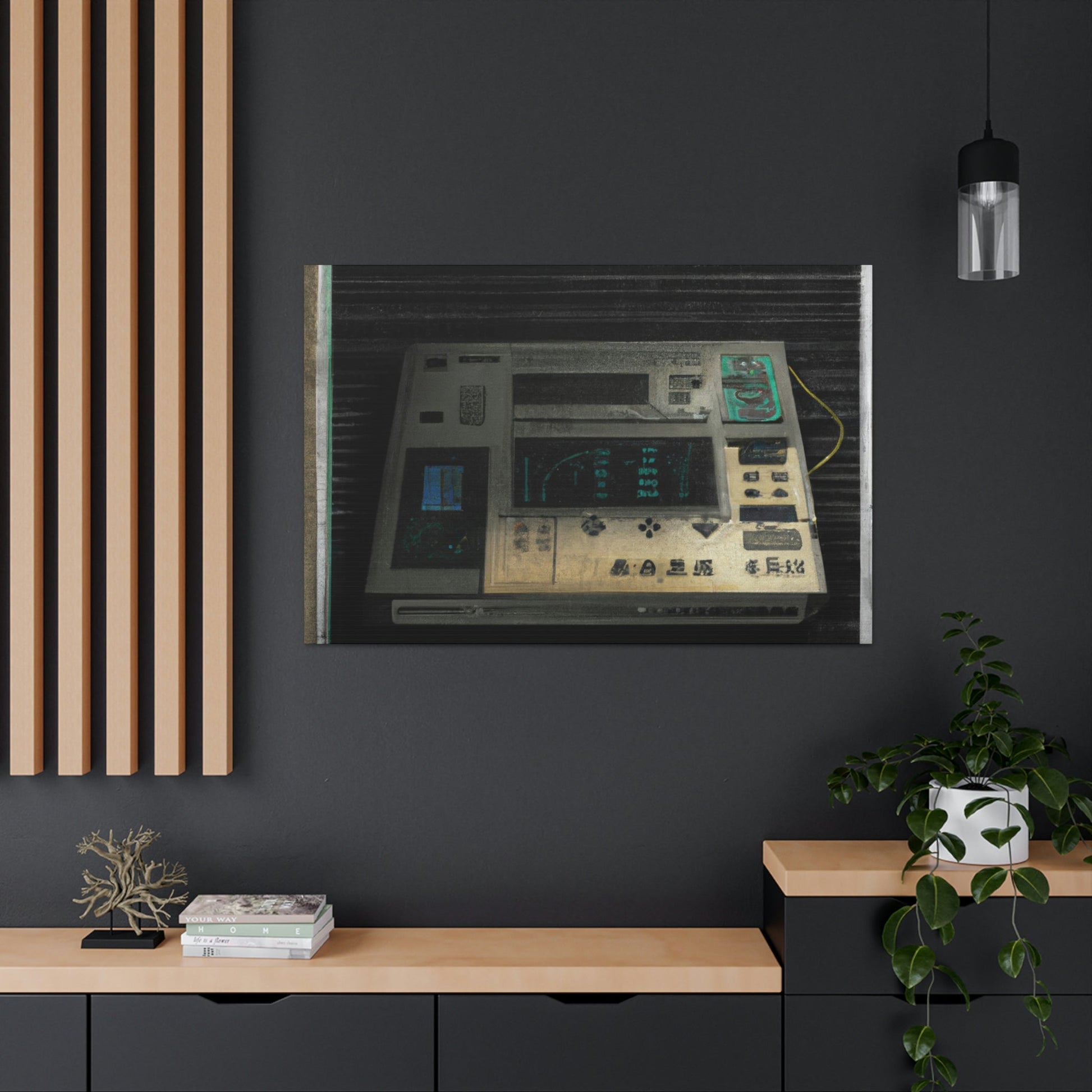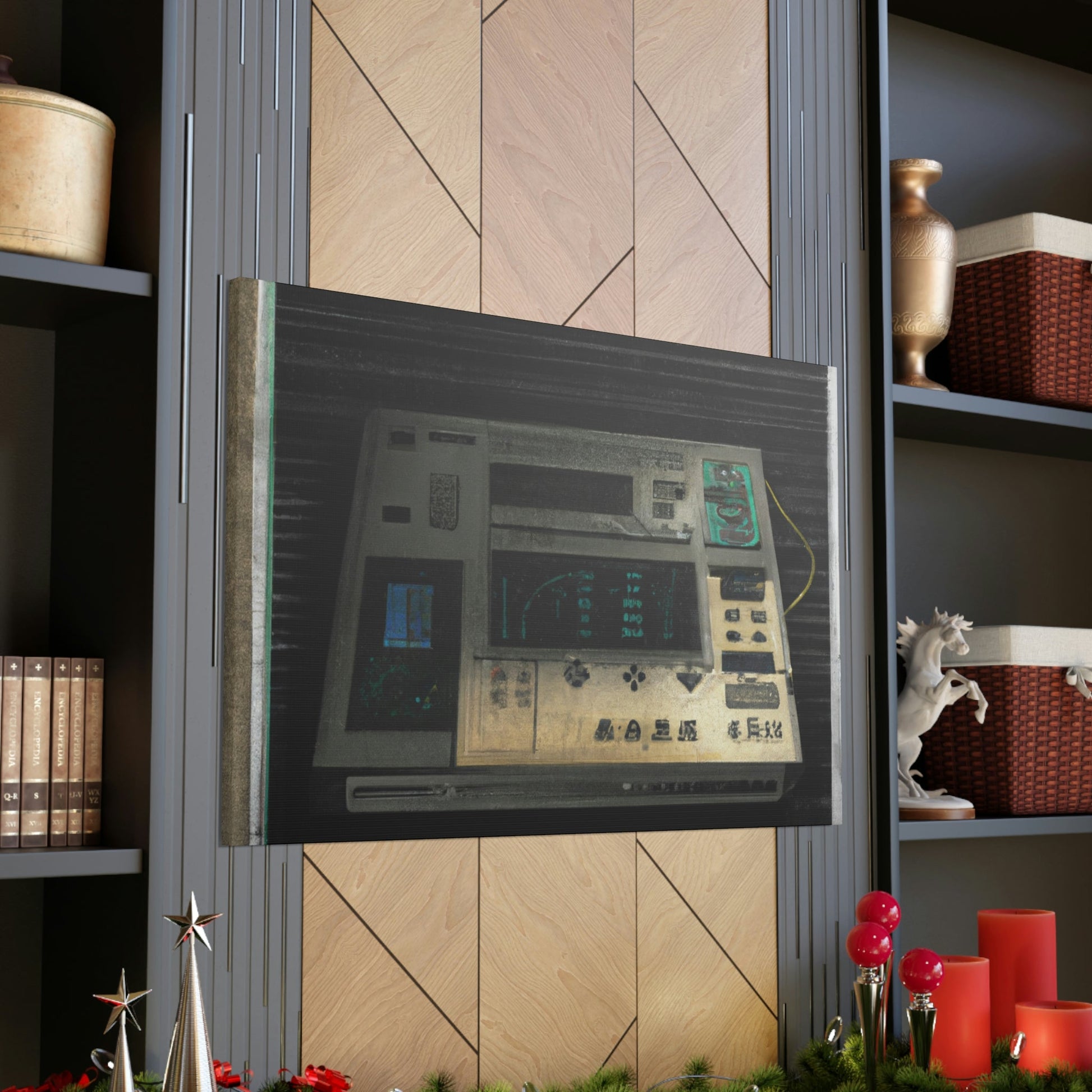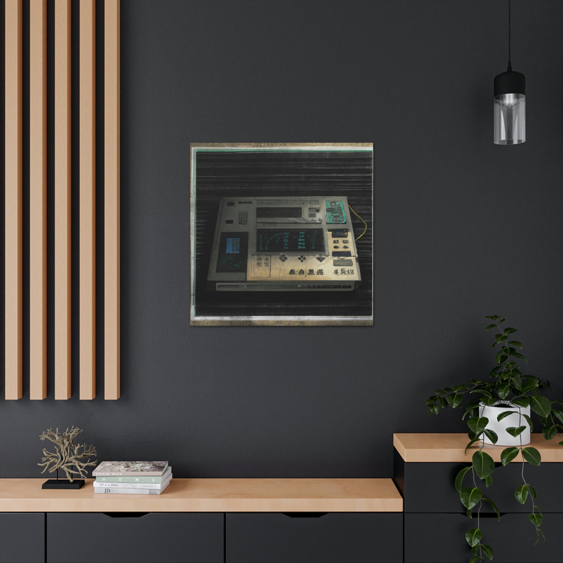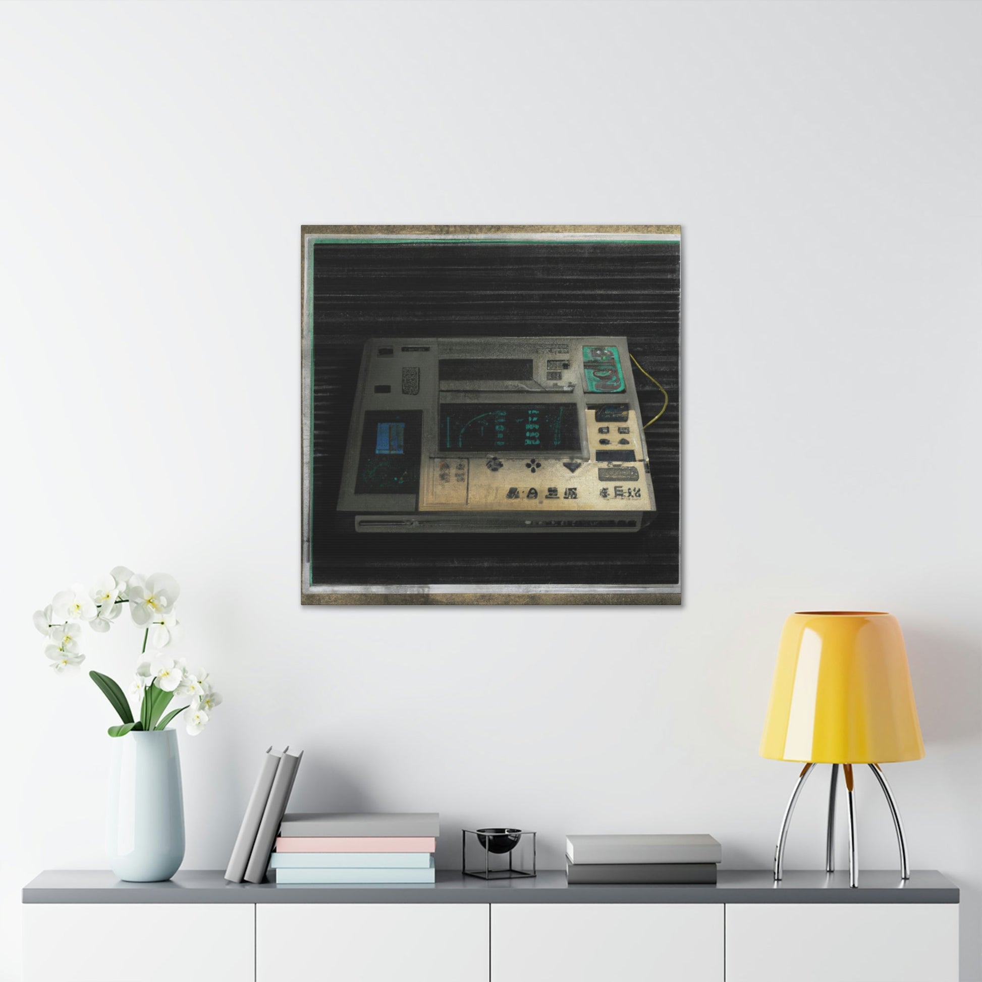 This high quality canvas of a photo-realistic painting of an 80s electronic device boasts muted tones and textured backgrounds. The perfect addition to any art gallery, this painting captures the energy of the 80s with subtle sophistication. Its timeless beauty will be treasured for generations to come.