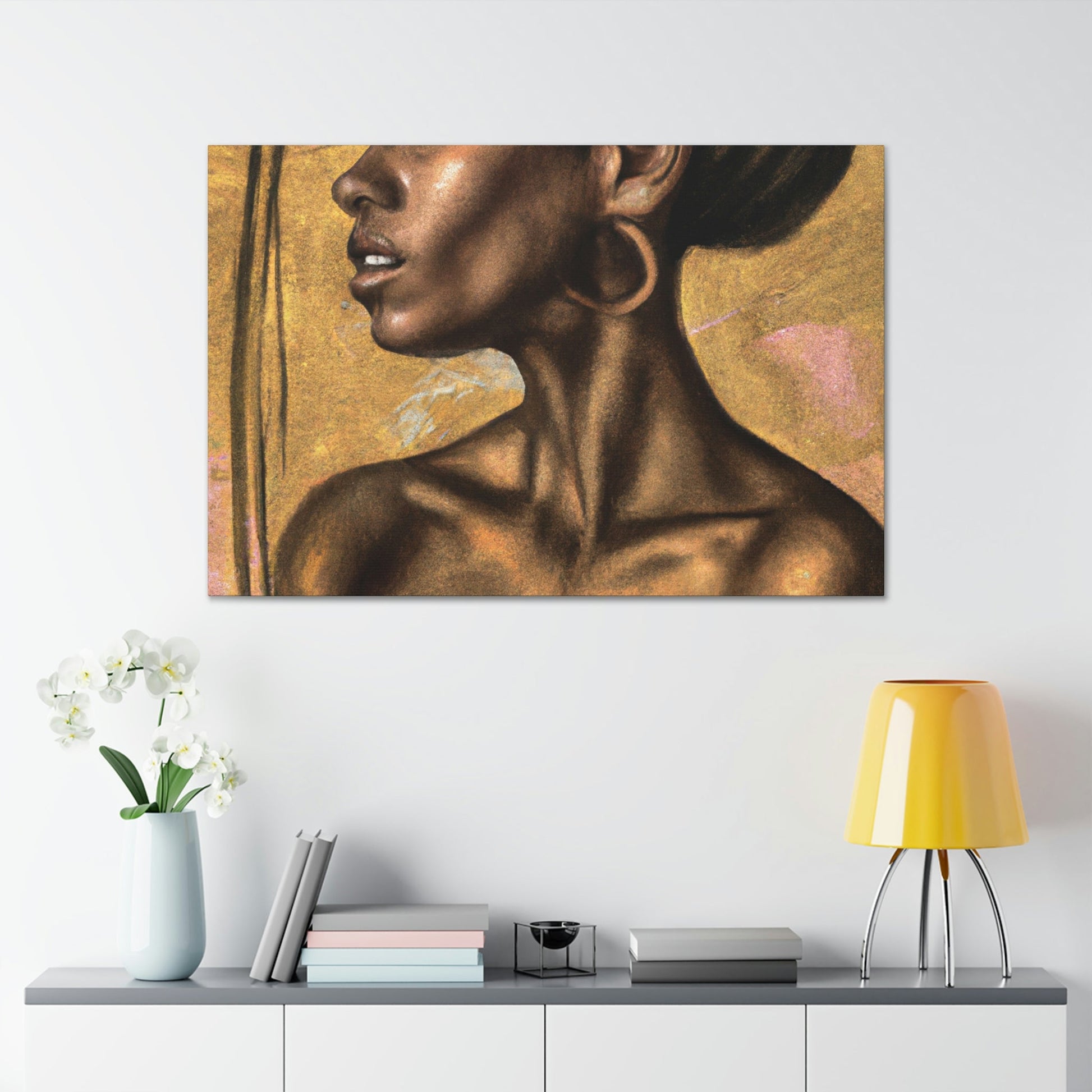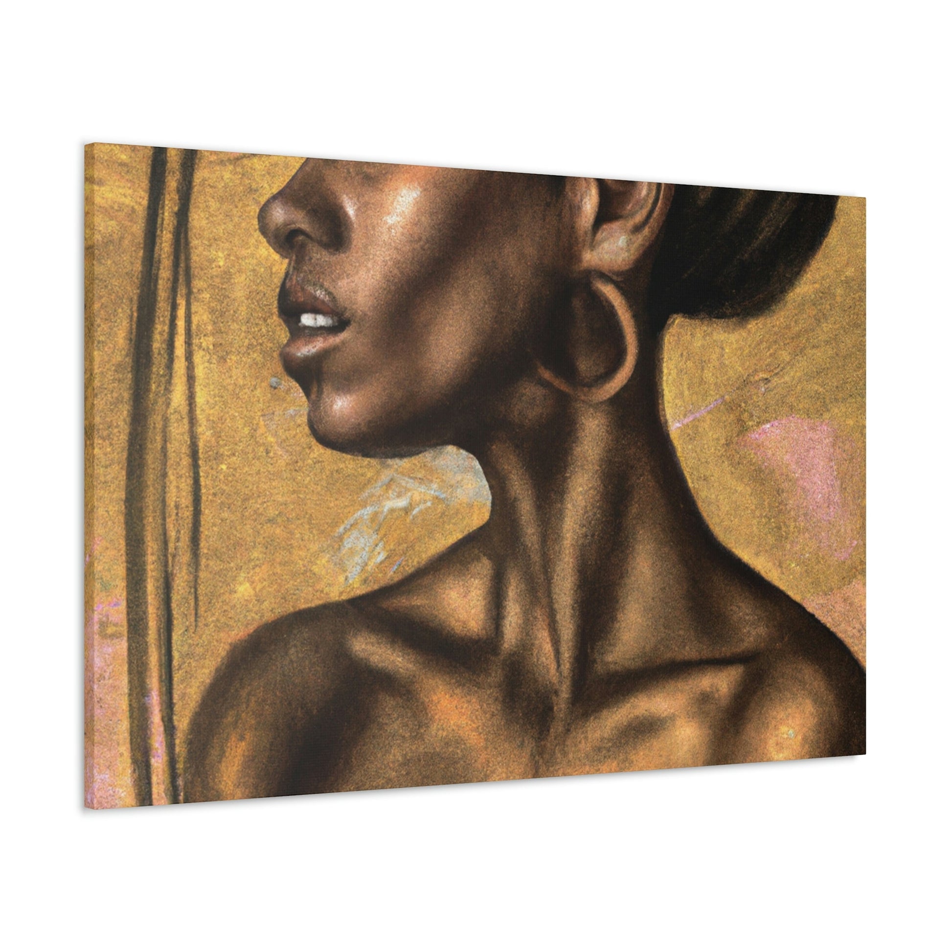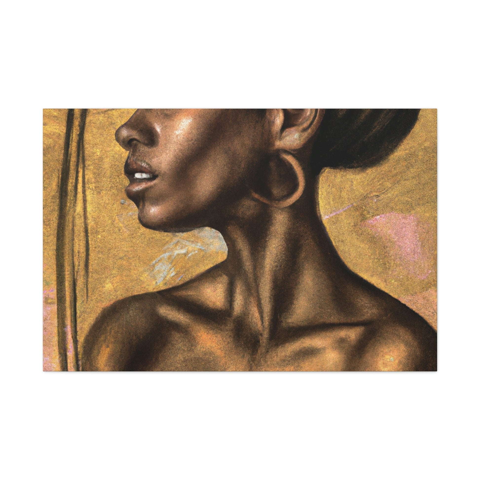 This high quality canvas of a fine art realistic painting of an elegant African American woman against a textured background is sure to make an impact in any space. The intricate detail of the woman's features and the eye-catching texture of the background will be sure to set this painting apart from the rest. With its vibrant colors and unique artistic style, this canvas is a great addition to any home decor.