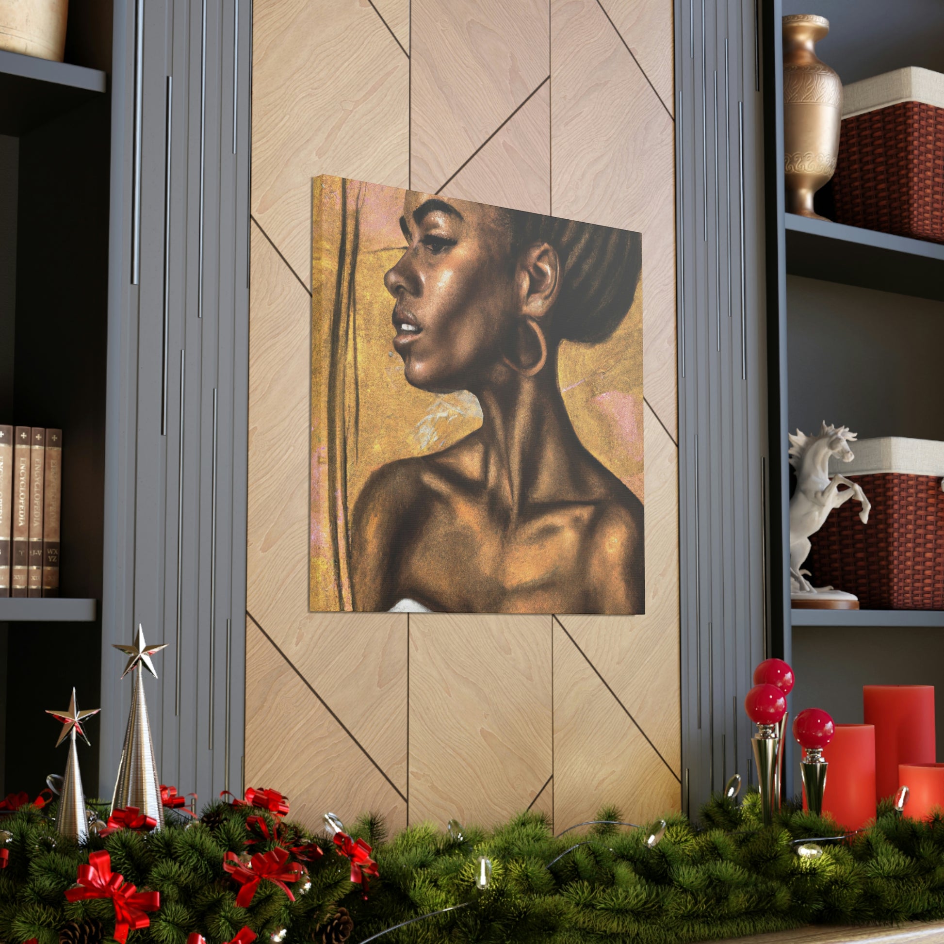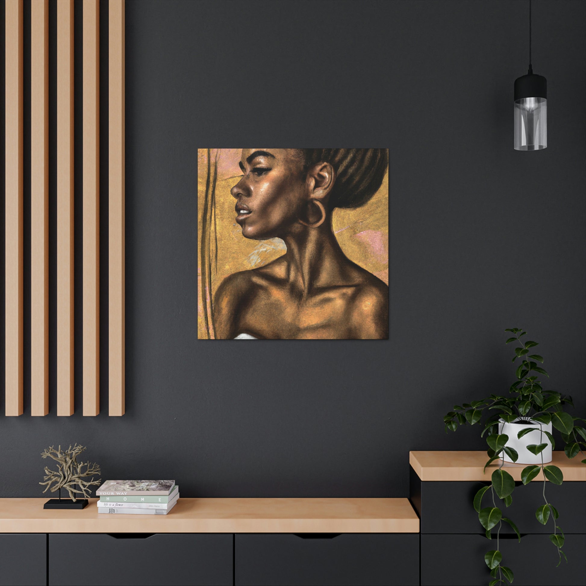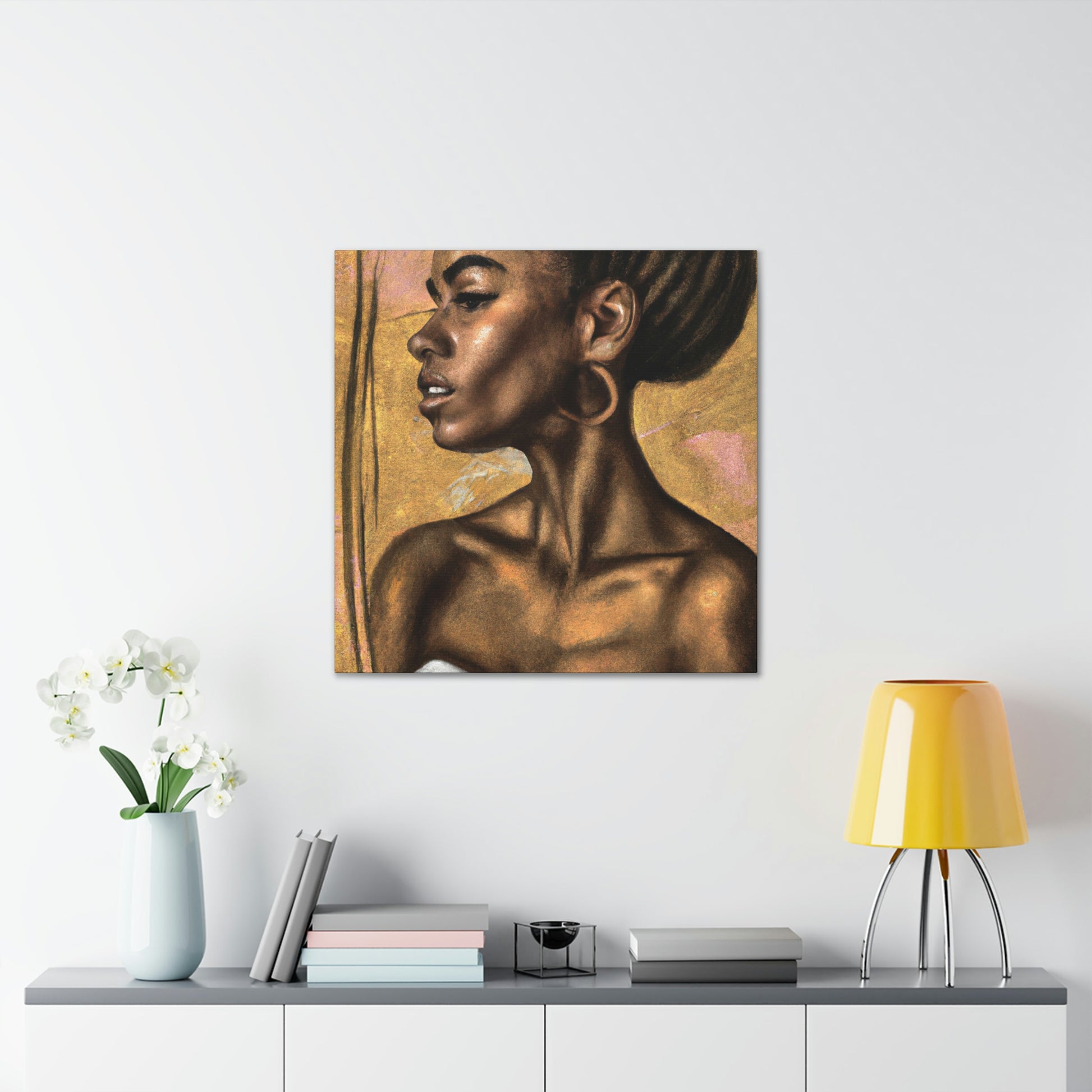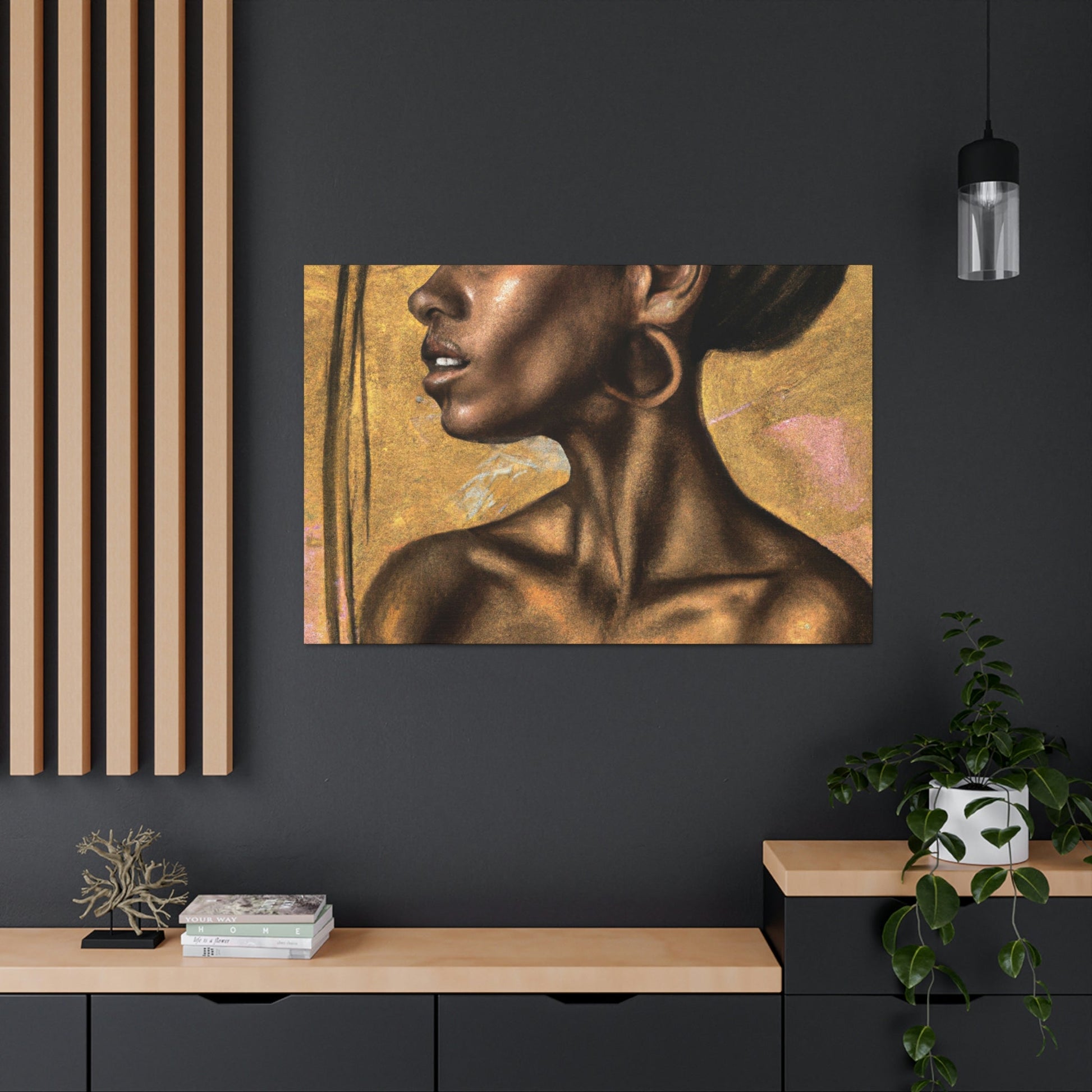 This high quality canvas of a fine art realistic painting of an elegant African American woman against a textured background is sure to make an impact in any space. The intricate detail of the woman's features and the eye-catching texture of the background will be sure to set this painting apart from the rest. With its vibrant colors and unique artistic style, this canvas is a great addition to any home decor.