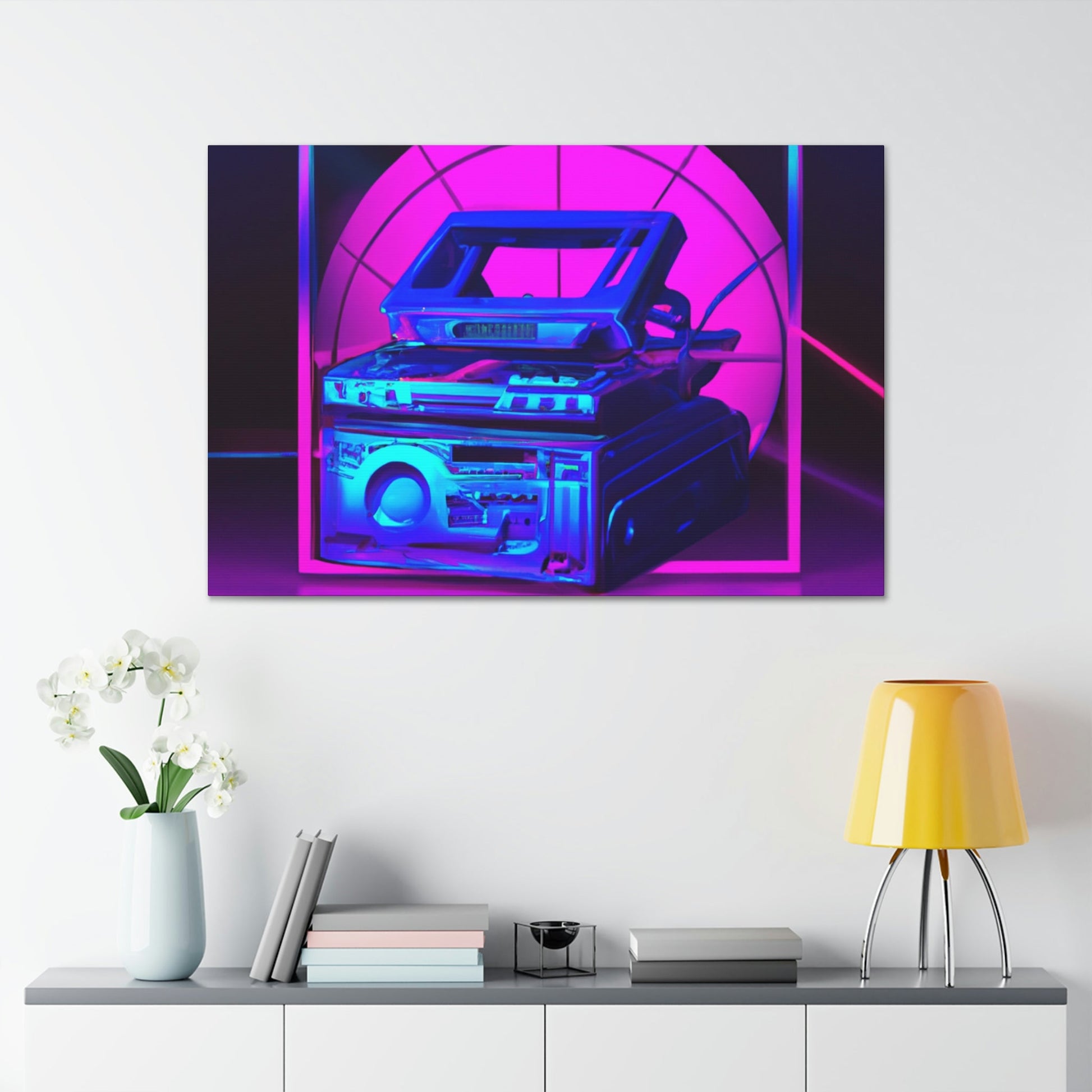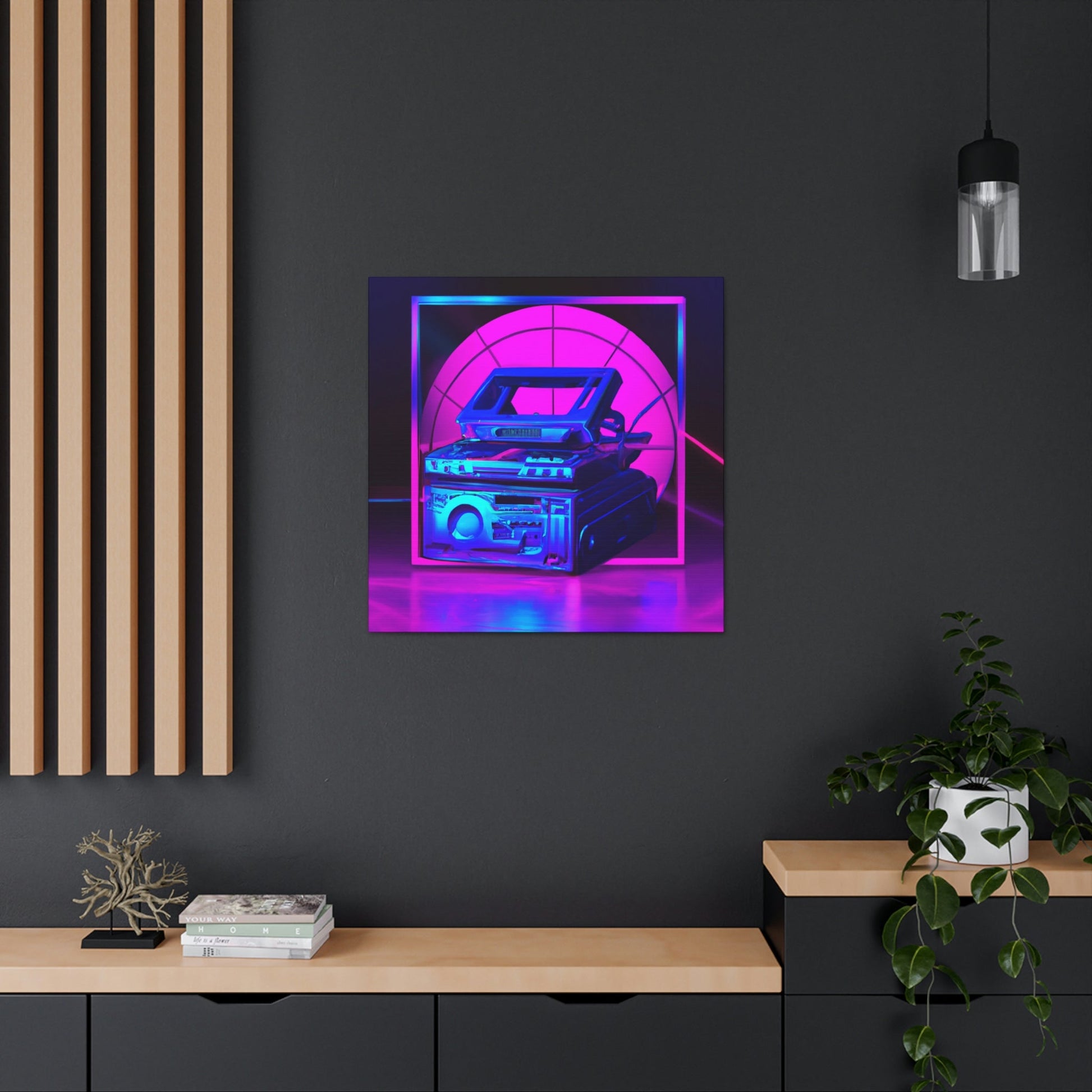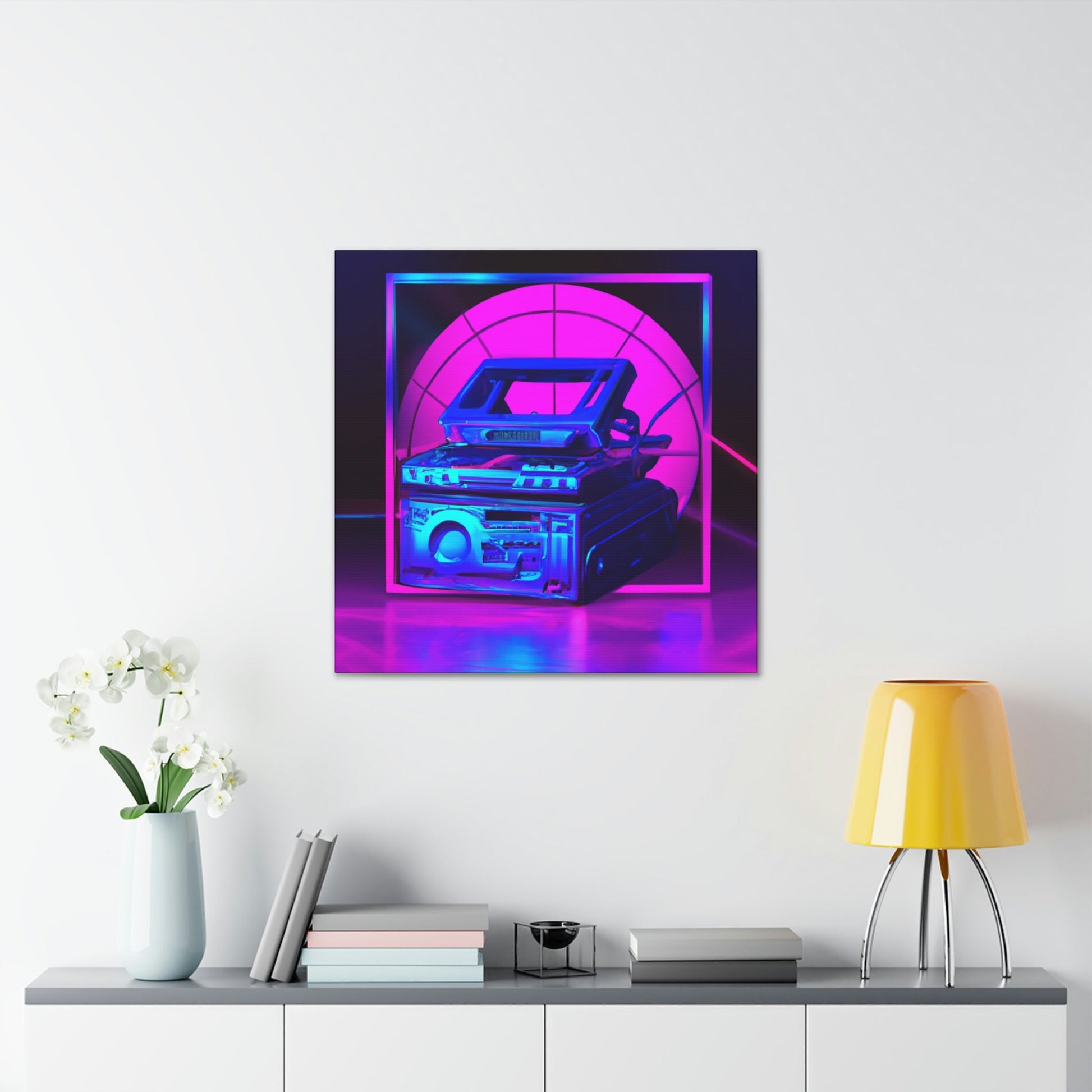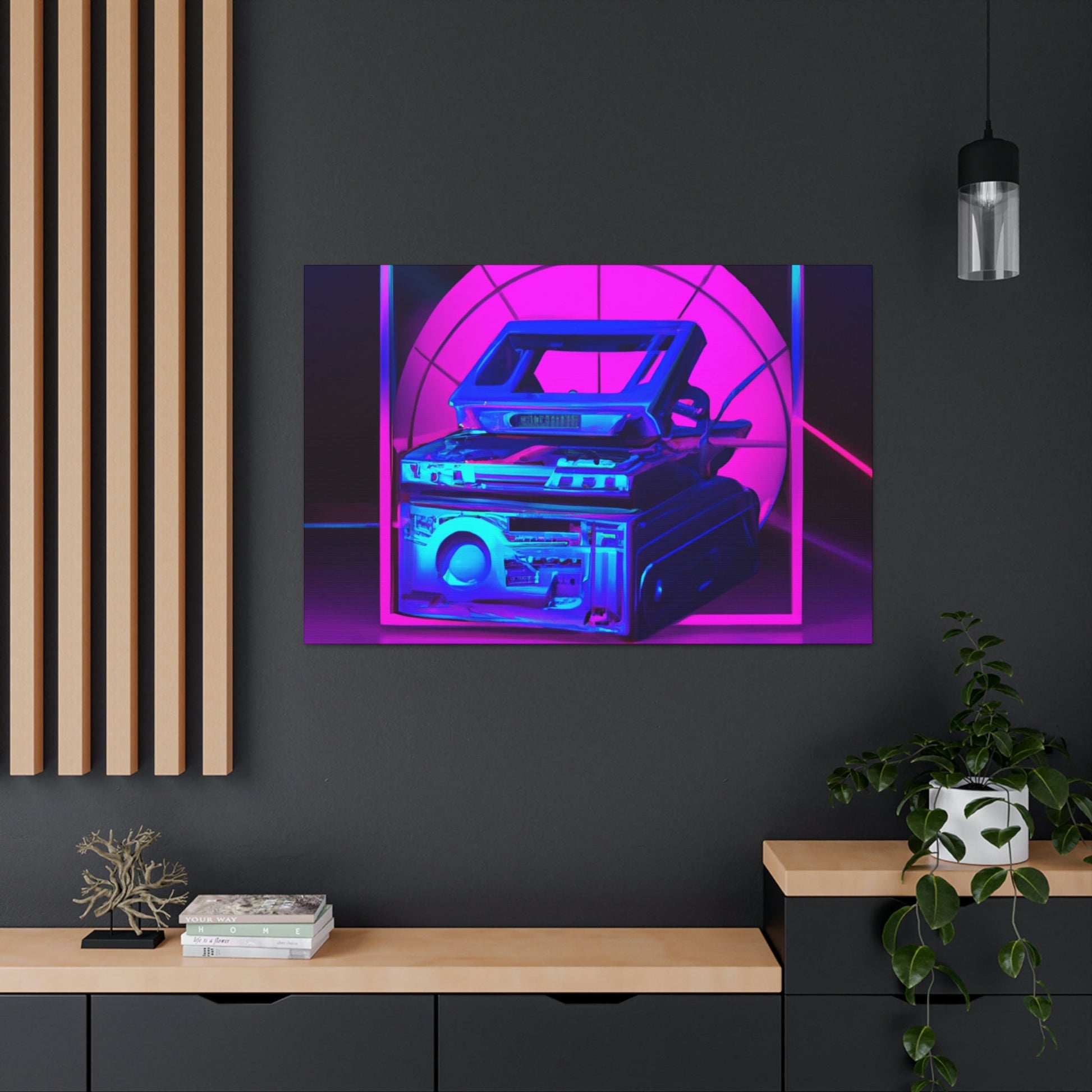 This high quality canvas art will bring an electrifyingly modern and vibrant aesthetic to any room. It captures the best of a detailed photo realistic illustration fused with a futuristically synthwave feel. Be prepared to be transported to a new world of imagination and awe as you gaze upon this brilliant piece. #hyperfuturistic #synthwave #artgallery #canvasart #modernart #photoart #vibrant #creativity #imagination #futureart #realisticart